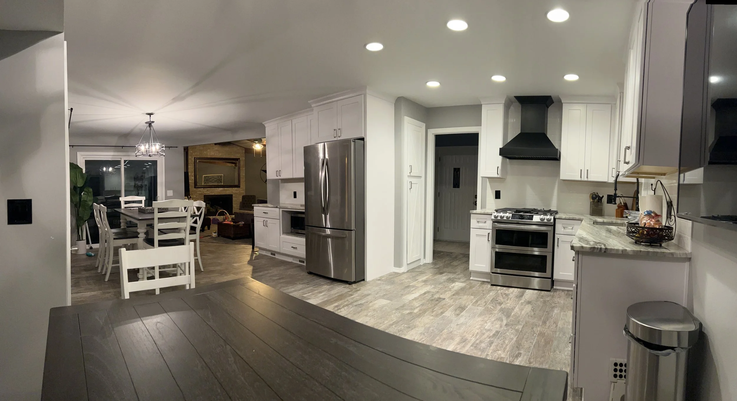 Modern kitchen with white cabinets and stainless steel appliances create that stunning transformation.